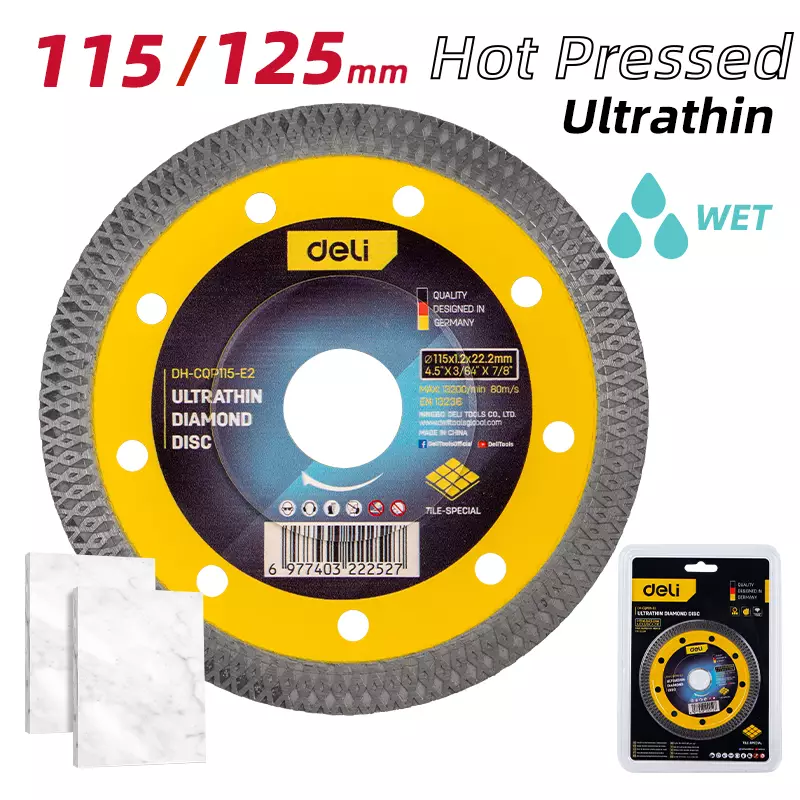 Серията Deli EDH-CQP включва ултратънки диамантени дискове, проектирани за постигане на изключително бързи, гладки и чисти срезове с минимално начупване (чипинг). Тези дискове са силно специализирани за рязане на най-твърдите материали, като например порцелановите и керамичните плочки.