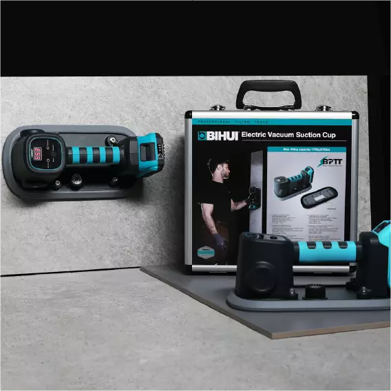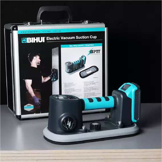 Електрическа вендуза BIHUI, арт. LFBSL е предназначен за ръчно транспортиране на каменни, керамични и бетонни плочи, стъкло и други материали, включително такива с агресивни релефни повърхности. Предназначен е специално за професионалисти в областта на паветата, полагането на подови настилки, стъкло, камък, монтажници на порцеланови плочки, строители и много други. Вендузата е оборудвана със сензор за налягане, цифров дисплей и манометър за визуален контрол. Сензорът за налягане анализира силата на въздушния вакуум и автоматично включва помпата, когато е необходимо да възстанови необходимите параметри на вакуума (автоматично изпомпване).