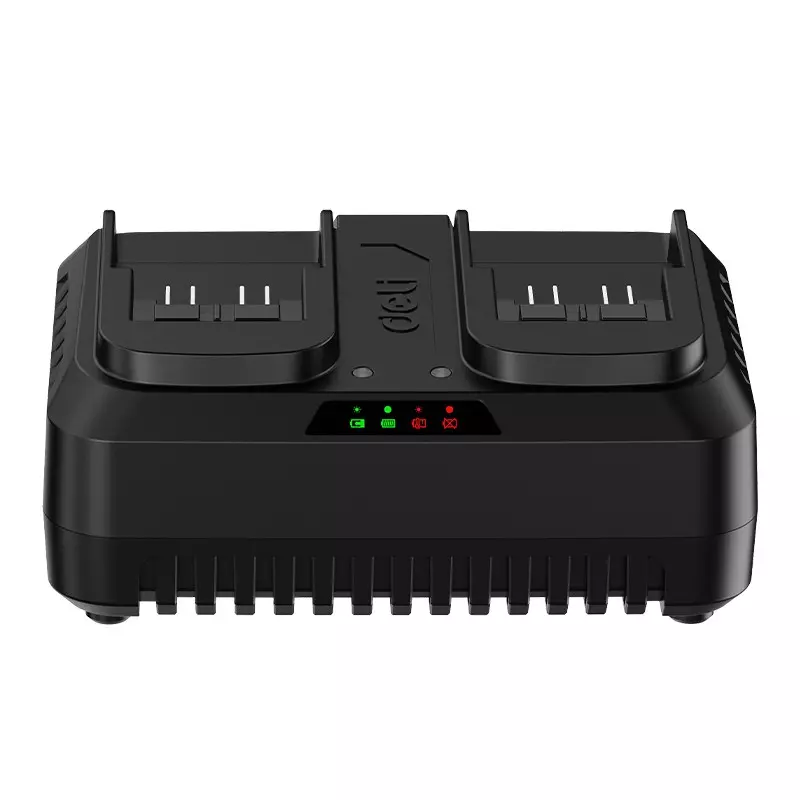Зарядното устройство Deli EDE-CD20D4 е проектирано за бързо, безопасно и ефективно зареждане на две Li-Ion 20V батерии на акумулаторните инструменти на Deli едновременно.
