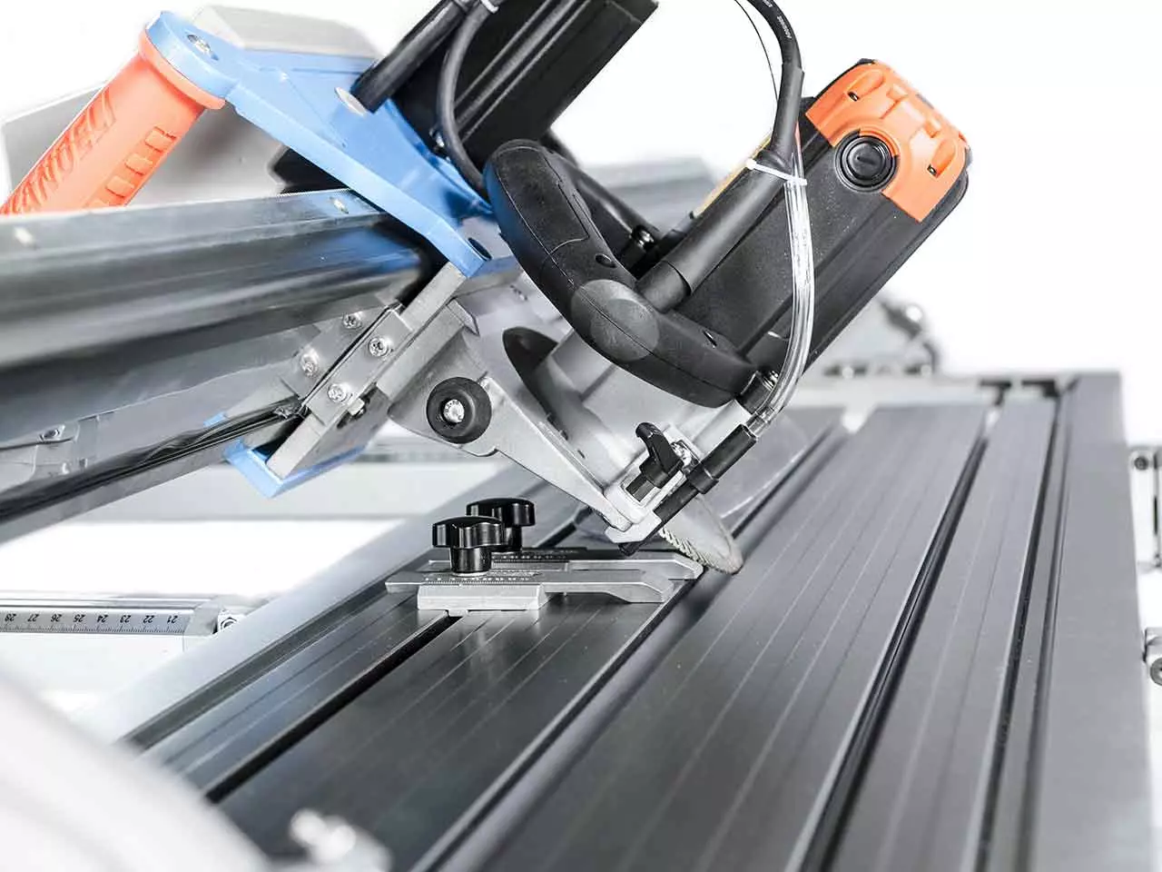 - Захватите, които са монтирани на масата, дават възможност за скосяване на плочките върху шаблона (това значително ускорява работата с големи количества нарязване под ъгъл).
