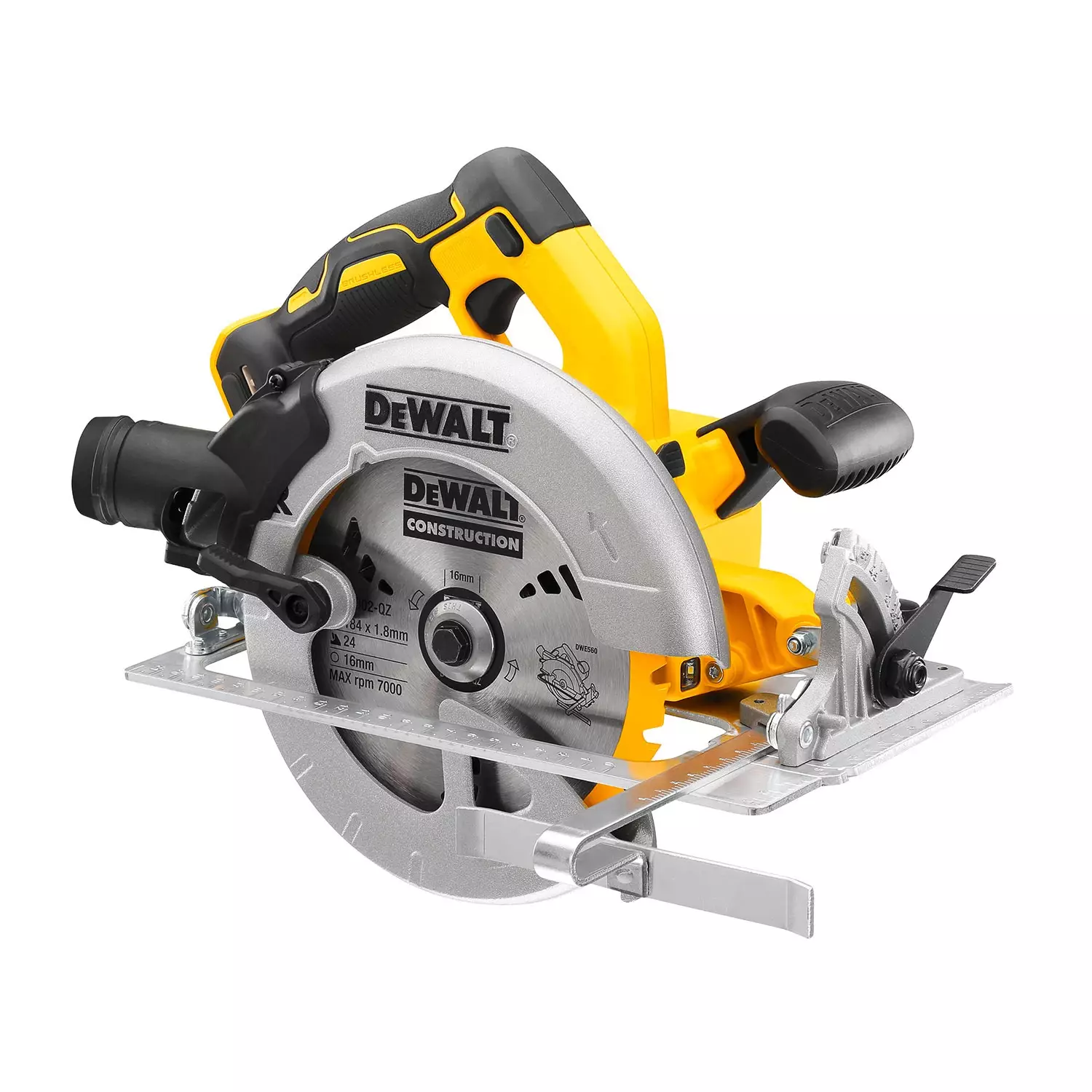 Акумулаторения ръчен циркуляр DeWALT DCS570N е с диаметър на диска 184 мм и се захранва от 18 V Li-Ion батерия (не е включена в комплекта).