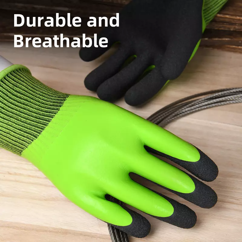 Висококачественото покритие на дланите гарантира стабилен захват, дори при работа с мокри стъбла или хлъзгави инструменти.