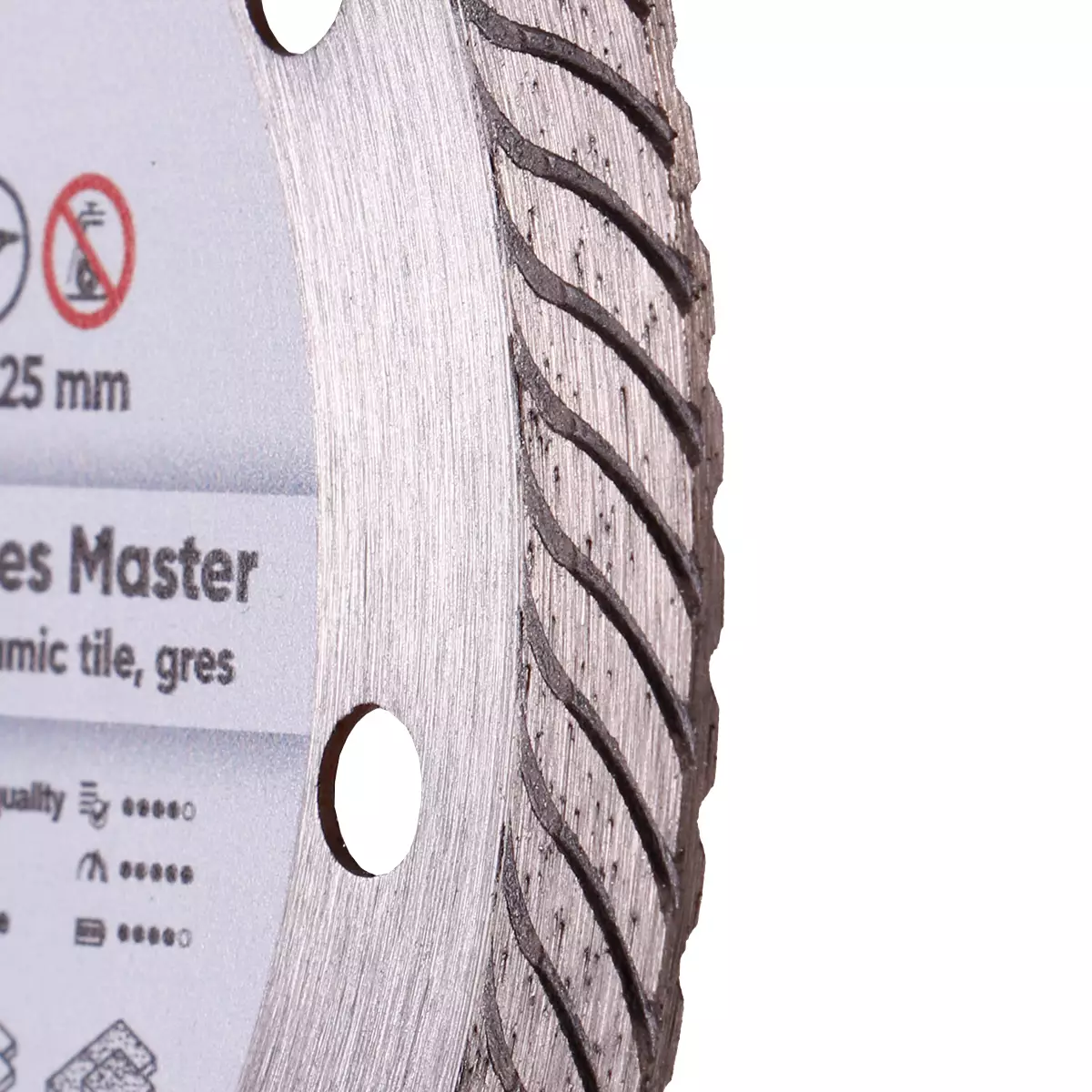 Дискът Gres Master е създаден за точно такива трудни приложения. Турбинираната повърхност на диамантения слой ефективно реже твърди материали. Също така тя доприася за ефективното охлаждане на диска . Дискът потъва нежно дори в най-дебелия порцеланов материал.