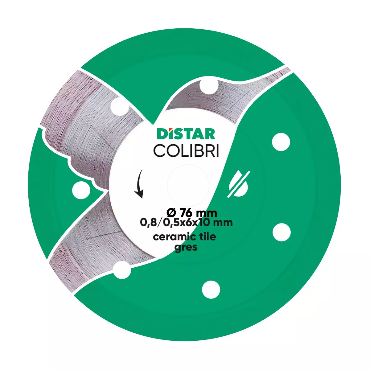 Дискът Colibri има непрекъснат диамантен слой с дебелина 0,8 mm, което Ви позволява да получите крайна ширина на рязане след завършване на остри ръбове до 1,0 mm. Благодарение на това можете лесно да извършвате такива сложни операции като изрязване на бутон за източване на резервоар.