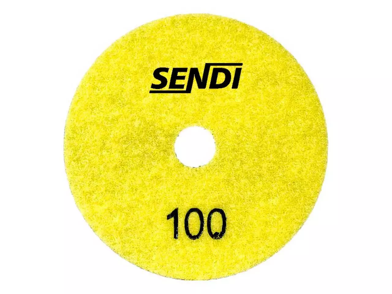 Диамантената полираща подложка SENDI с диаметър 100 мм и зърнистост 100 е предназначена за сухо шлайфане и полиране на различни повърхности, включително гранит, мрамор, керамични плочки, порцеланови изделия и бетон. Полиращият диск осигурява перфектно покритие както на плоски повърхности, така и на скосени ръбове. Полиращият диск се монтира и демонтира лесно благодарение на удобното си закрепване с велкро.