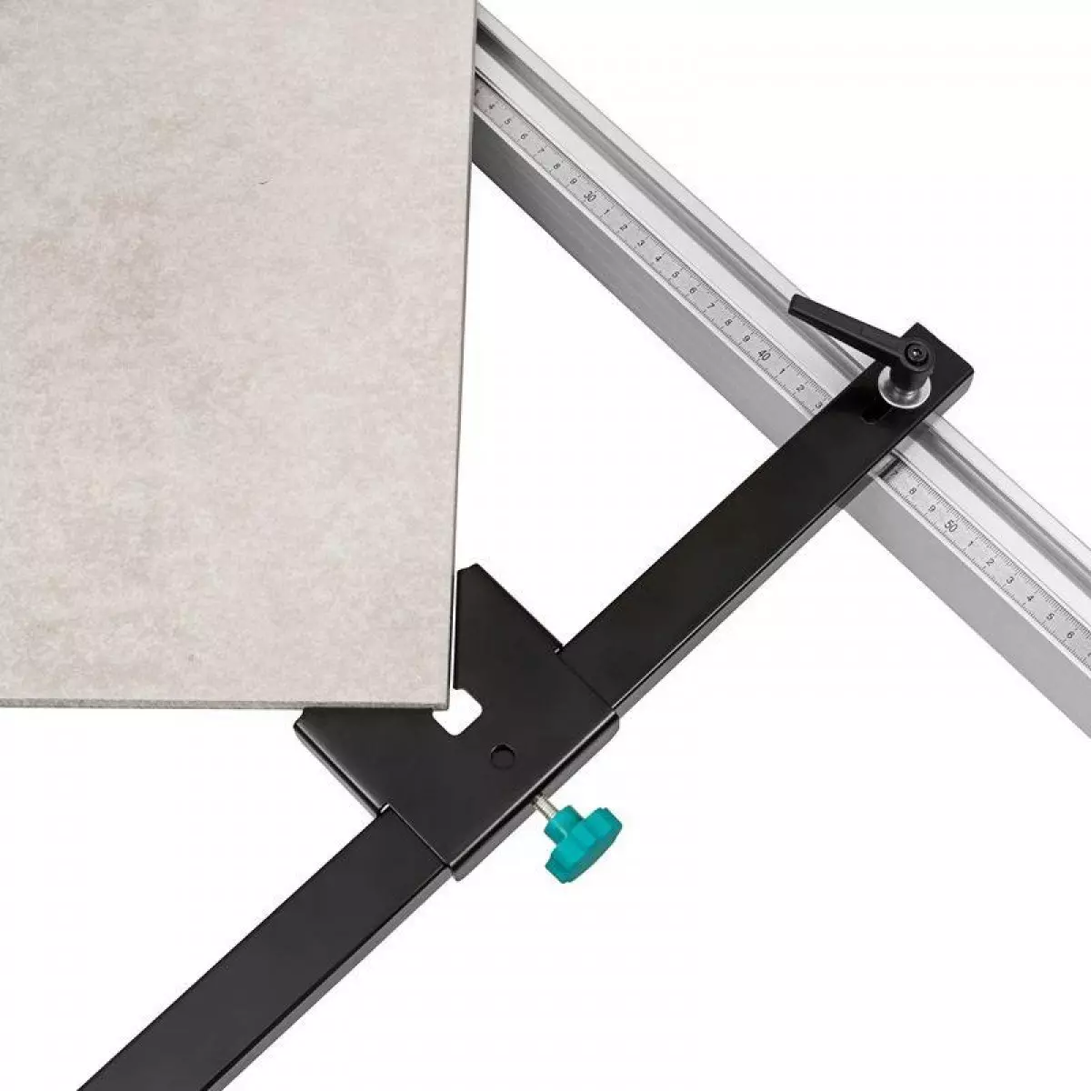 – Комплектът включва странични линийки, които Ви позволяват да поставите плочките без допълнителни маркировки, регулирайки равномерността на среза, а също така позволяват серийно право и диагонално рязане.