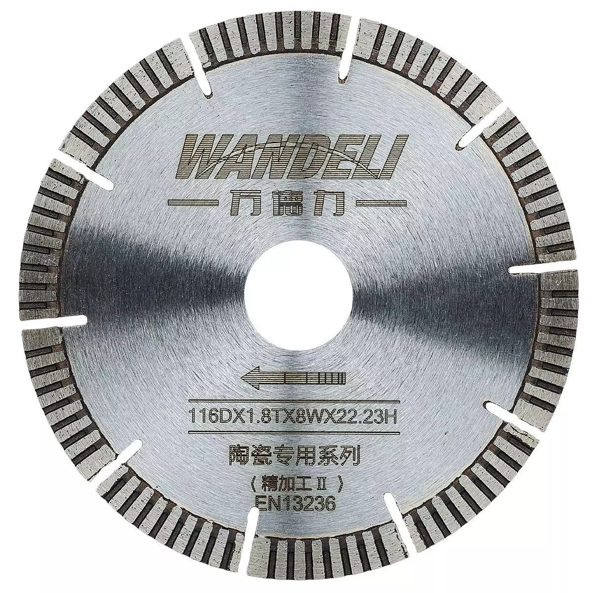 Диамантен диск за гранитогрес, керамика и камък WANDELI J&P с диаметър 116 мм и вътрешен диаметър 22.23 мм.