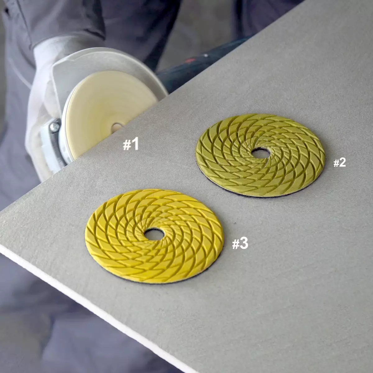 Полиращите дискове CoolPAD са специално проектирани за сухо шлайфане на керамика, порцеланови изделия на ъглошлайфи. Съставът на диамантено носещия слой осигурява постоянно висока скорост на обработка, което гарантира най-доброто качество на повърхността. Можете да докоснете глазурата на плочката, без да се страхувате, че ще повредите ръба. Профилът на слоя, под формата на „еволвента“, ефективно премахва утайката от зоната на пилене.