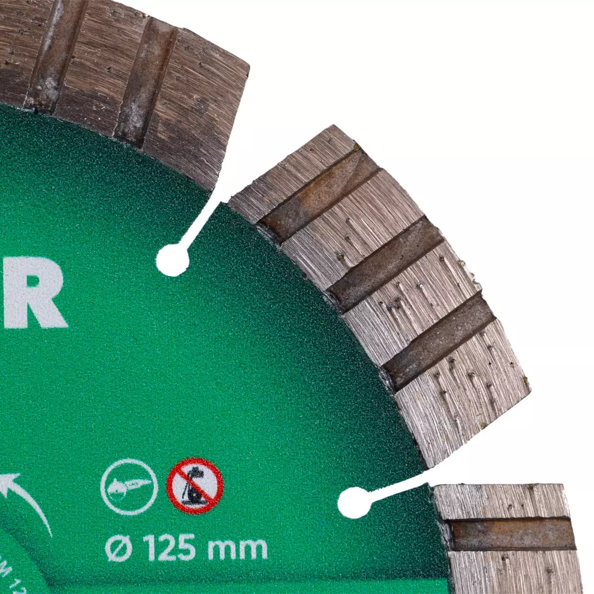 Може да се използва с всеки ъглошлайф, оборудван със стандартен захват на диска от 22,2 mm. Благодарение на турбо сегментната си форма, която подобрява отстраняването на частиците, ножът работи най-добре с ъглошлайф със средна мощност от 2,2 kW.