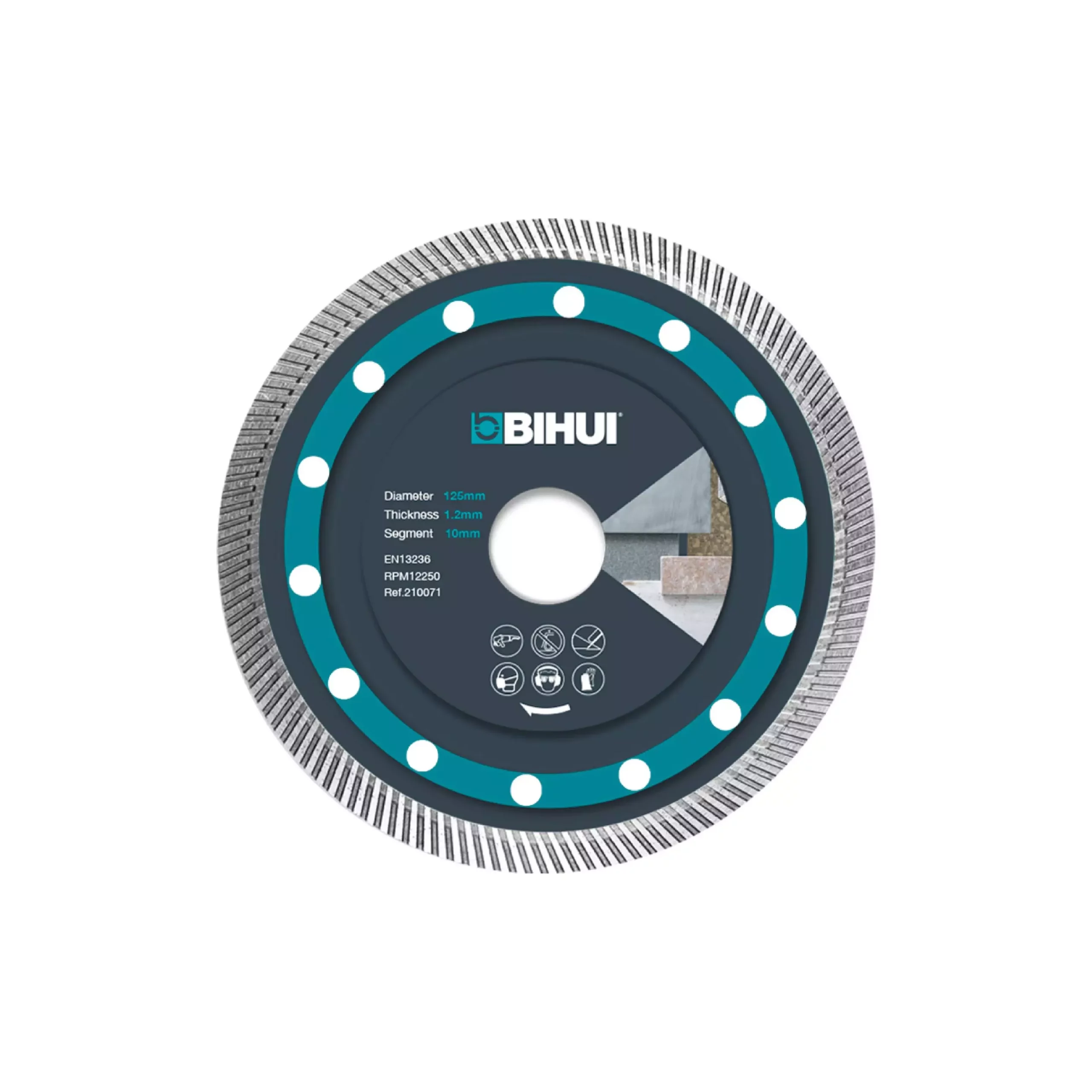 Диск за бърз и фин ряз, който е идеален за широкоформатни плочки поради ефективно охлаждане и скорост на ряза. Поради тънкост на диска 1.2мм има възможност само прав ряз и не става за рязане под 45 градуса (герунг).