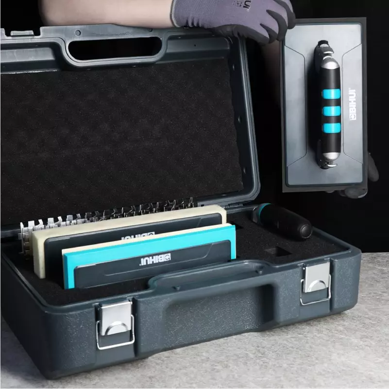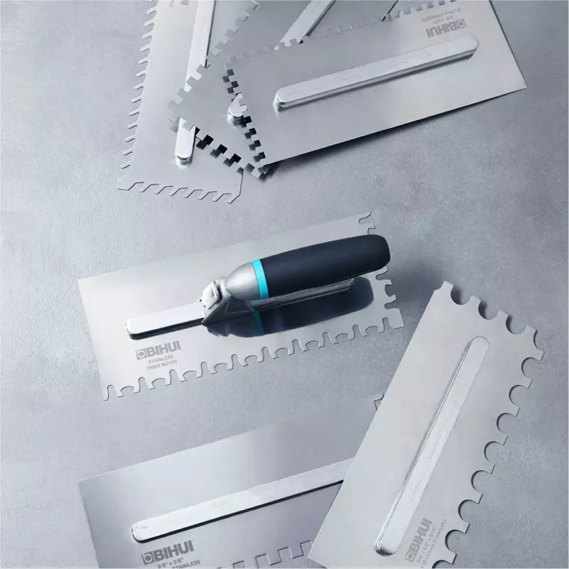 Универсалният комплект BIHUI включва всичко необходимо за извършване на широк спектър от работи с плочки на различни етапи, от полагане до почистване. Комплектът се състои от пет назъбени остриета от неръждаема стомана с различни форми, три шпатули с различна твърдост за работа с циментови и епоксидни фугиращи смеси и гъба за почистване. Назъбените остриета са с дължина 280 mm, ширина 115 mm и дебелина 0,7 mm. Работната плоча на гребените е изработена от високоустойчива на абразия неръждаема стомана. Една от характеристиките на всички гребени BIHUI е идеално равната и гладка повърхност на работната плоча. Друга отличителна черта на комплекта е широка гама от подвижни остриета (шпатули) и размери на зъбите.