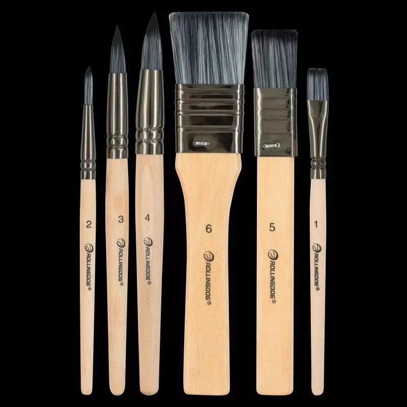 Този комплект е предназначен за деликатно боядисване. Кръглите четки се използват за създаване на контури и скици, което Ви позволява да рисувате много ясни линии, очертавайки остри ъгли. Плоските четки са доста гъвкави, те могат да задържат много боя и са добри както за запълване на големи площи, така и за създаване на ясни, широки щрихи. Почти всички щрихи, направени с плоска четка, ще образуват скосен или прав ъгъл. Плоските четки са много търсени в архитектурната живопис.