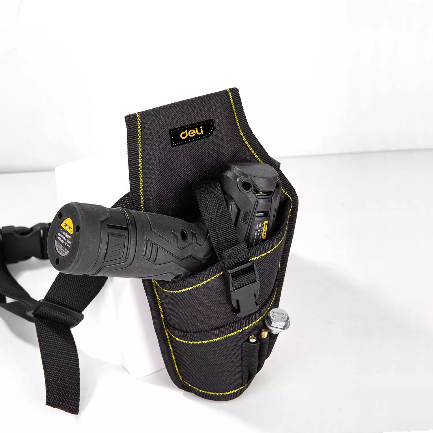 - Удобен и функционален размер: С размери 26×15 см, този кобур е компактен и подходящ за лесно съхранение и носене на безжични винтоверти в ежедневието.