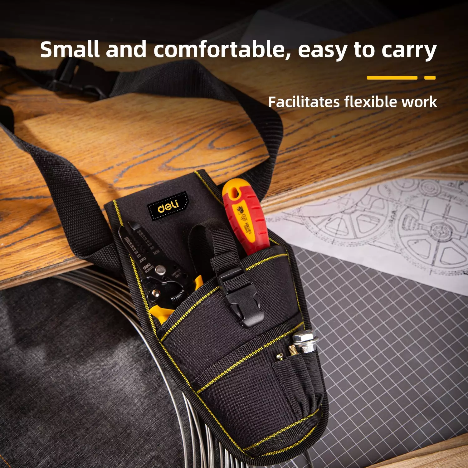 - Допълнителни джобове: Специалени отделения за аксесоари (бургии, болтове, винтове, анкери).