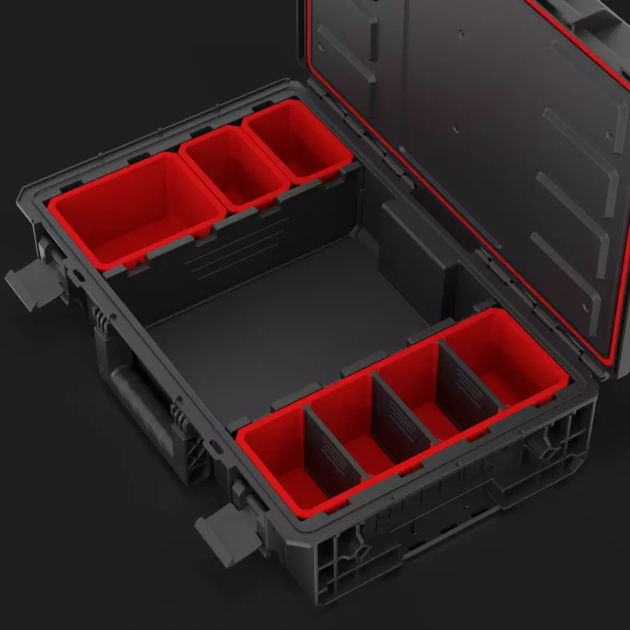 Благодарение на регулируемите прегради и 6-те подвижни кутии, потребителят може да създаде комбинация, оптимална за неговите нужди. Всеки куфар е оборудван с гъвкаво уплътнение, което осигурява пълна защита срещу проникване на прах и вода (IP66).