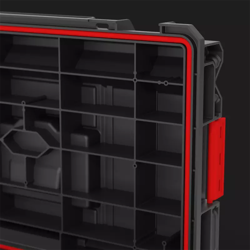 Двете регулируеми прегради Ви позволяват да поддържате ред вътре в куфара. Всеки куфар е оборудван с гъвкаво уплътнение, което осигурява пълна защита срещу проникване на прах и вода (IP66).