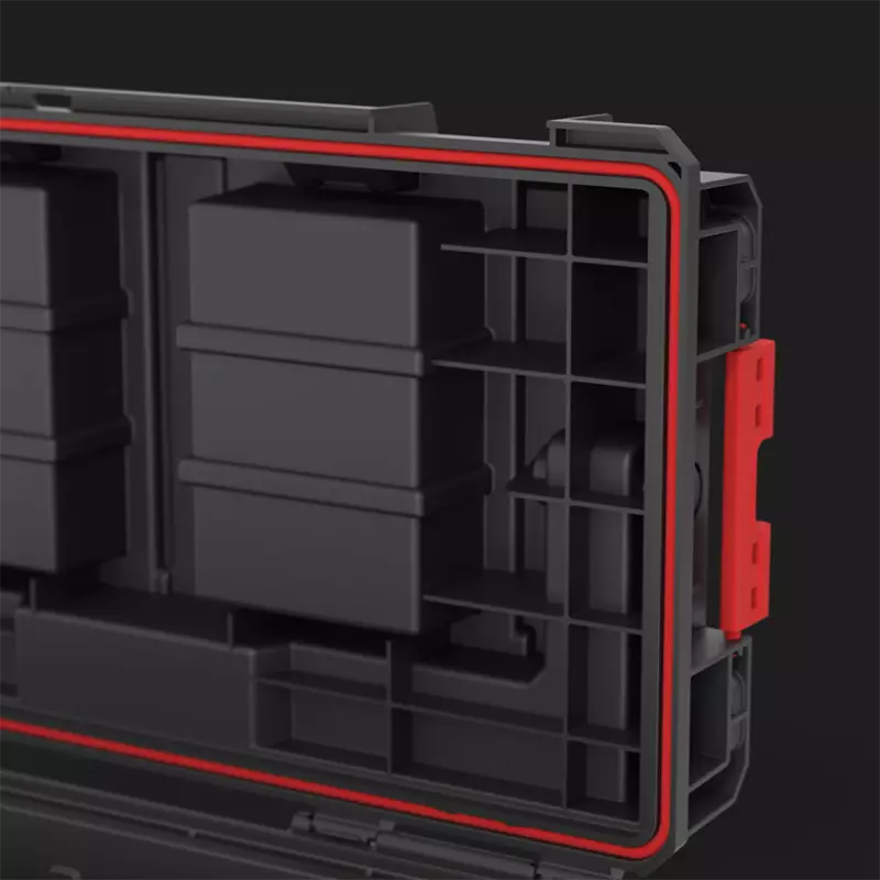 PRO 500 е най-малкият представител на новото поколение професионални куфари за инструменти. Серията PRO се отличава с уникалната за този клас функция за свързване на два куфара с помощта на полиамидни съединители и гъвкава уплътнителна лента, осигуряваща пълна устойчивост на проникване на вода и прах. Капакът Profi с два органайзера Ви позволява лесно да подредите малките аксесоари от Вашата работилница.