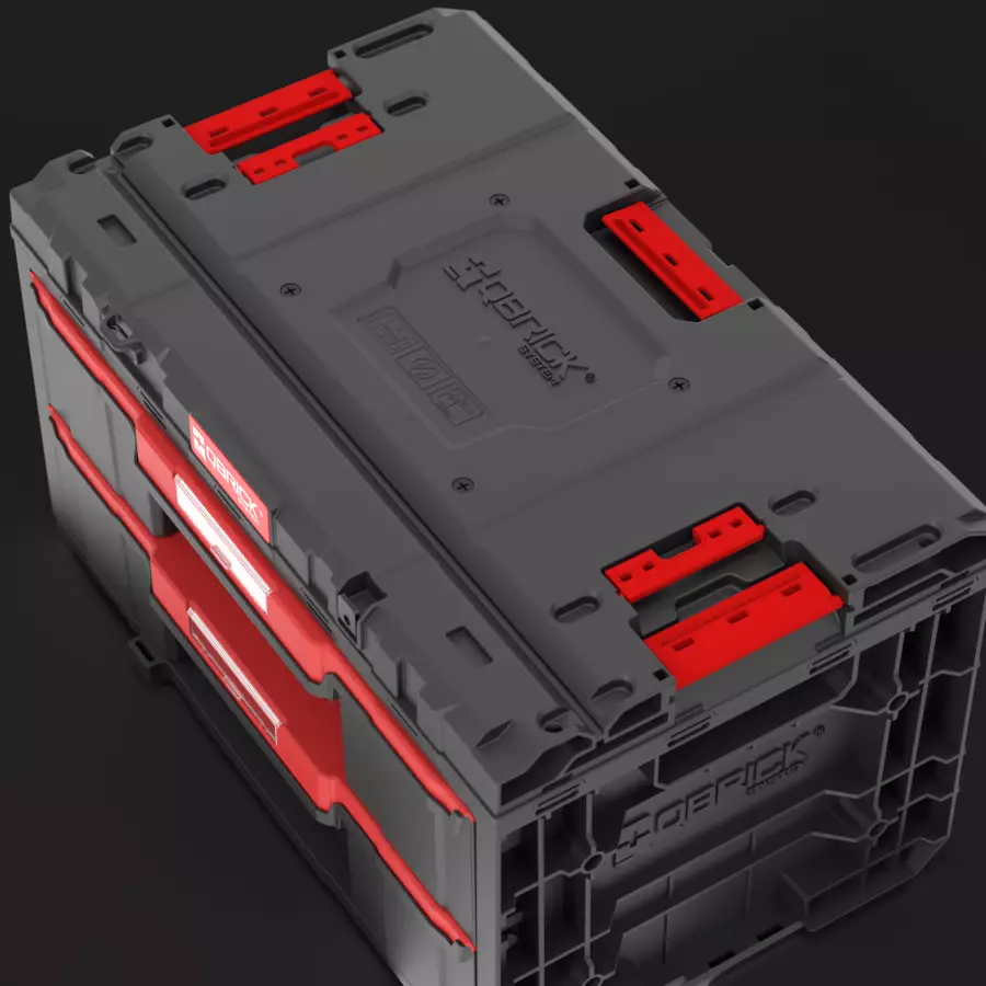 Qbrick System ONE Drawer 2 Toolbox е много просторна, модулна кутия за инструменти. Оборудвана е с две чекмеджета, плъзгащи се по метални водачи. Удобен бутон осигурява лесен достъп до съдържанието им. Двете чекмеджета с еднаква височина са оборудвани с регулируеми прегради, изработени от ABS. 3те дълги и 8 къси отделения позволяват разделянето на 12 отделни отделения с регулируем размер.