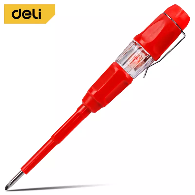 Фазомерът Deli DL515250 е изолиран инструмент за безопасно тестване на електрически вериги и откриване на живи проводници. Основната му функция е откриване на променливо напрежение (AC), което позволява да се проверяват електрически инсталации. Допълнително, инструментът може да се използва като отвертка, което го прави практичен и универсален помощник за електротехници и домашни майстори.