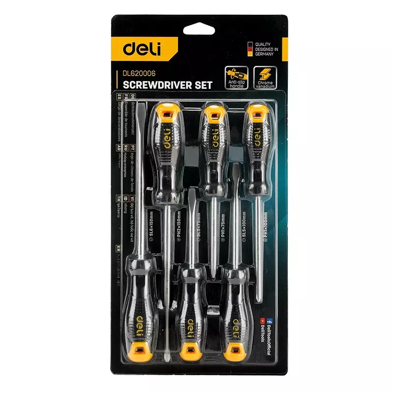 - Висококачествен материал Cr-V (хром-ванадиева стомана) за отлична издръжливост и устойчивост на корозия, което увеличава дълготрайността на инструмента. Тези отвертки са създадени да издържат дълго време при всякакви условия.