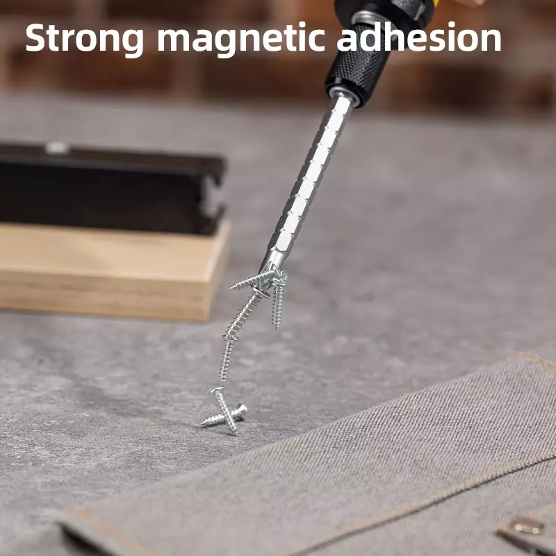 - Магнитна сила: Силно намагнетизиран връх за стабилен захват на винтове.