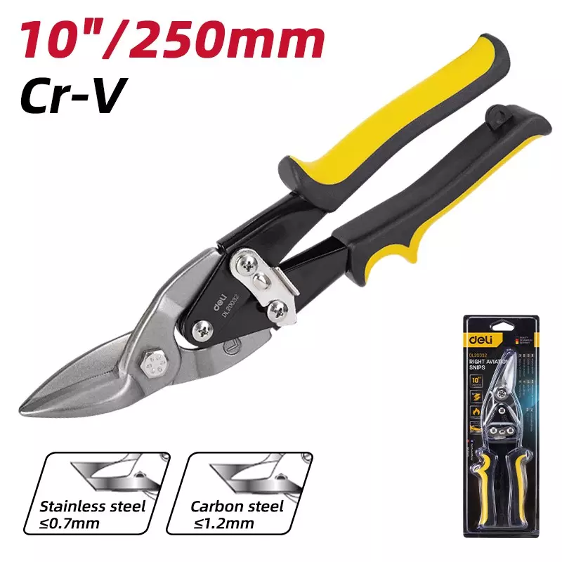 Ножица за ламарина – дясна. Микро назъбени 60Cr-V остриета за по-качествено рязане без повреждане на материала. Заключваща система на остриетата.