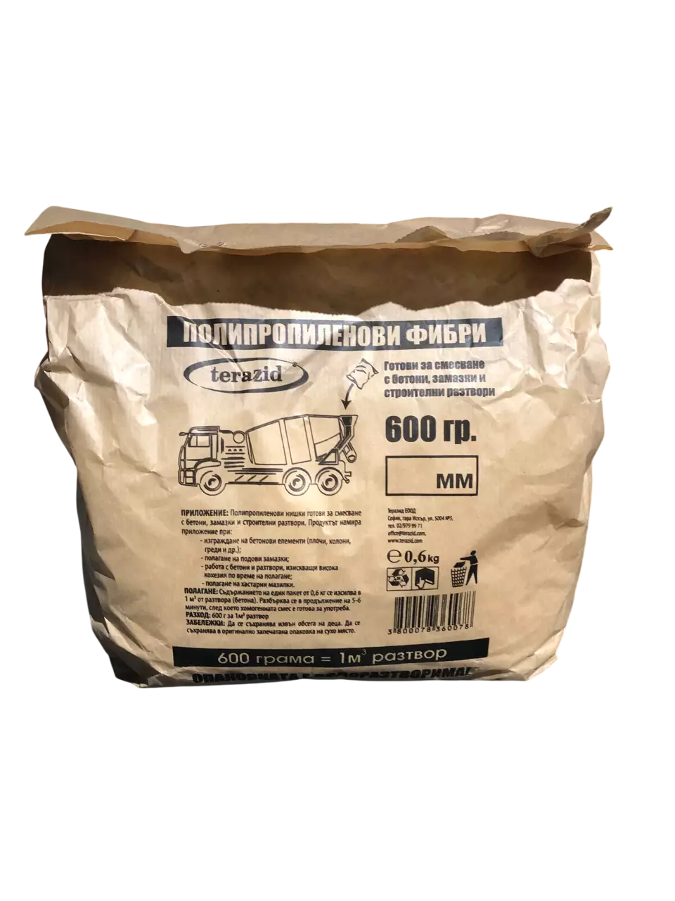 Полипропиленови фибри – за бетонови, циментови и варови разтвори 600 гр.