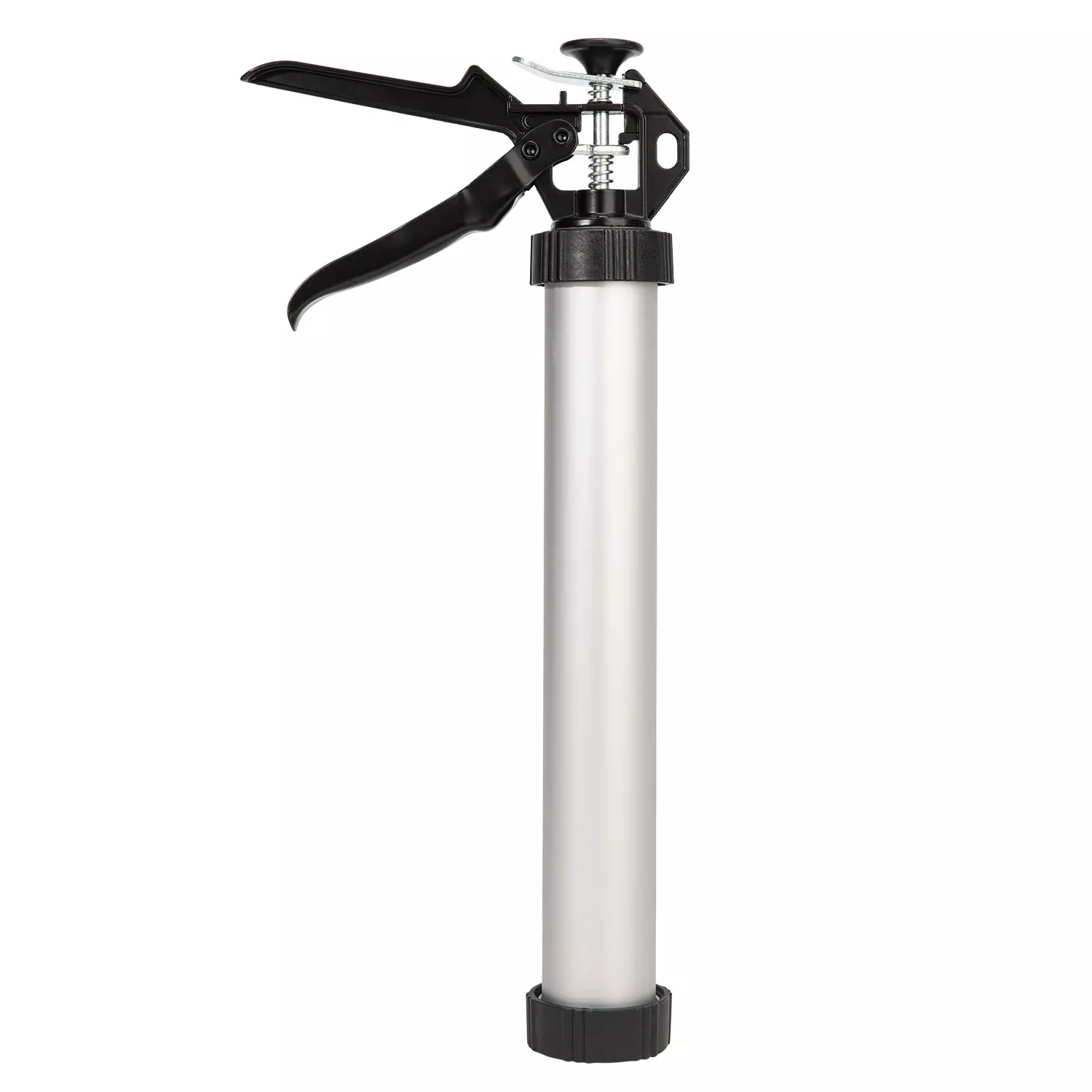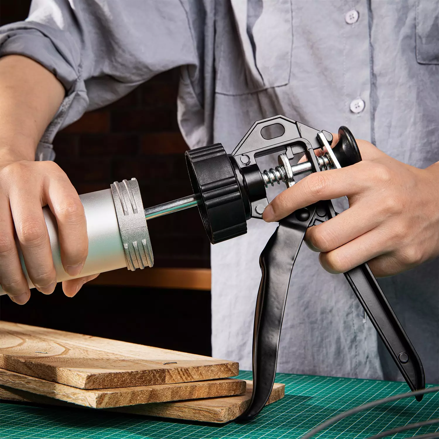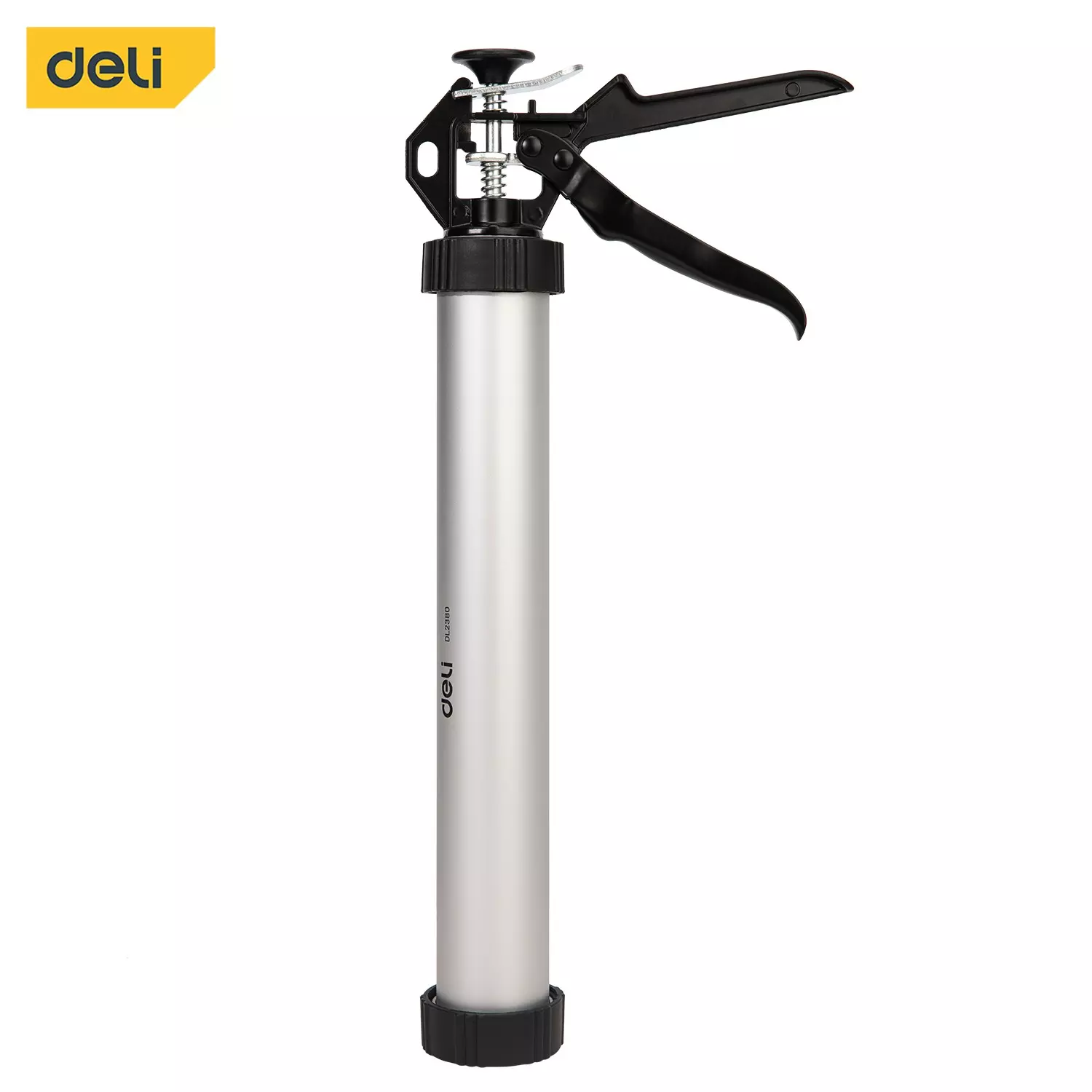 Пистолетът за силикон Deli EDL2380 е проектиран за професионална употреба и висока ефективност. С дължина 15″ (380 мм) и конструкция от алуминиева сплав и стомана A3, този модел предлага надеждност, издръжливост и лекота при работа. Благодарение на 360° въртящия се държач за салами, нанасянето на уплътнители и лепила е удобно дори в труднодостъпни места и при работа под различни ъгли.